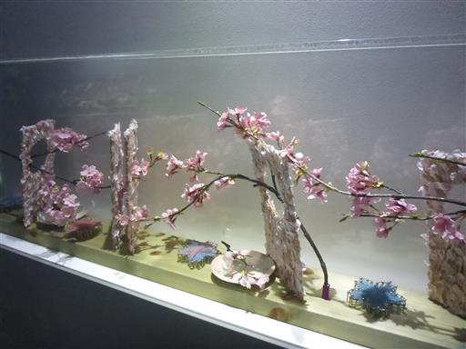 水槽以外に桜も飾られている。