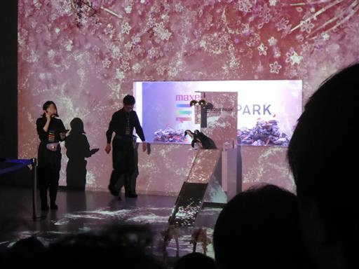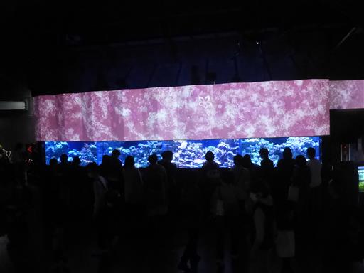 下は水槽、上は映像。テーマは桜だ。
