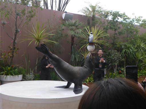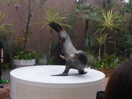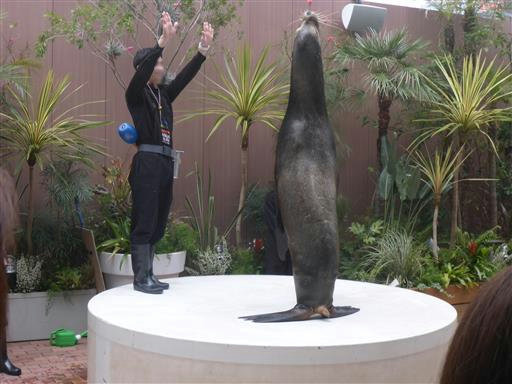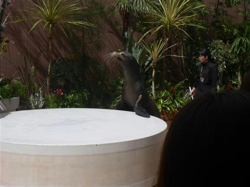 アシカショーを見に行く。かなり近くからショーを見ることができる。