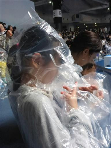 前の席は濡れると何度もアナウンスがあったため、緊急でポンチョを購入。