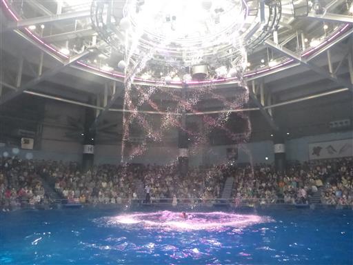 ショー開始。はじめはオーソドックスなイルカのショー。