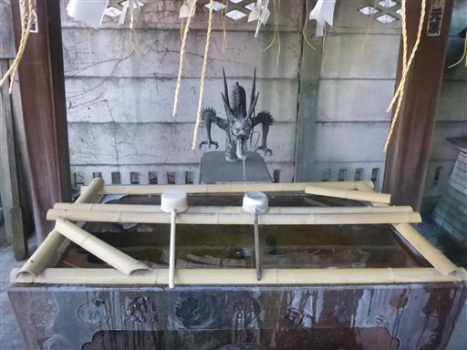 手水舎。上にセンサーがついていて人が近づくと水が出る。