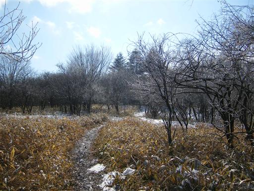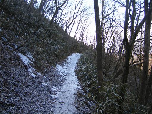 山の南面を下る。こちらには雪がない。