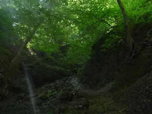 薄暗い沢沿いの道を登っていく。