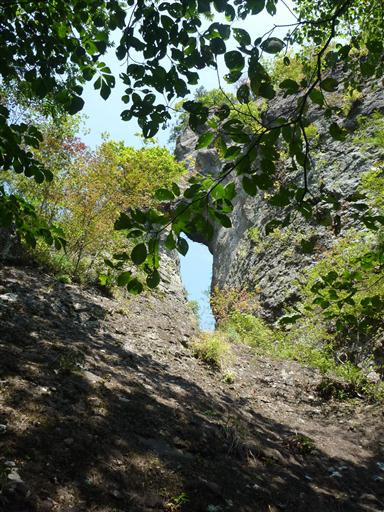 第二石門を見上げる。こちらも縦に長い穴だ。