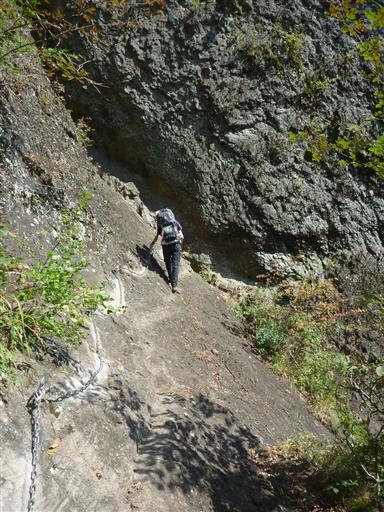 第二石門に至る道は「かにの横ばい」と名付けられた鎖場になっている。