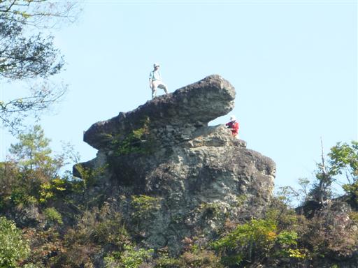 先ほど登った「天狗の評定」にたくさんのハイカーが立っている。すぐ下は絶壁が続いている。