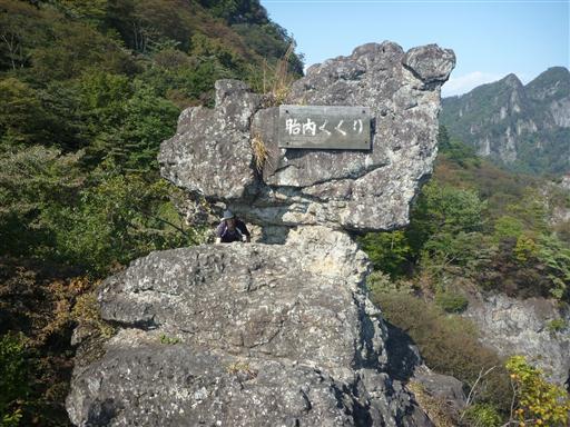 「胎内くぐり」と名付けられた岩場。奥に小さな穴が開いている。