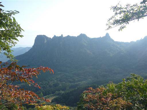 目の前には妙義山塊の一つ、金鶏山が聳える。