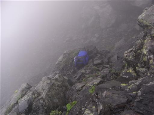トラバース道から稜線に出ると凄まじい暴風雨に襲われる。