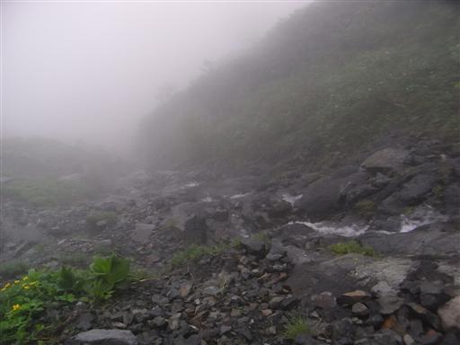 ここから暴風雨の稜線まで登り返す気にはなれないので、