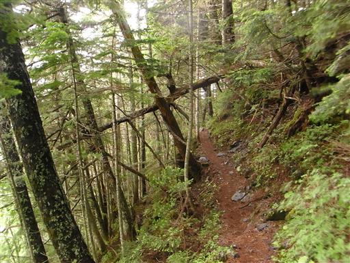 途中で交差した登山道まで戻ってそのまま下山することにする。
