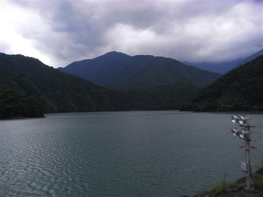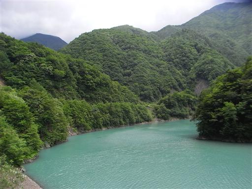 赤石沢に創られた赤石ダム。湖面の色はなかなかきれいだ。