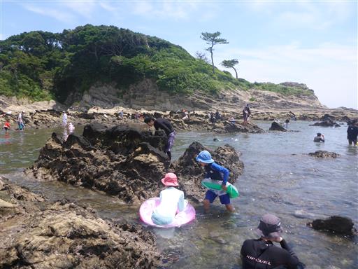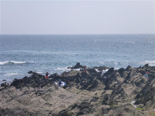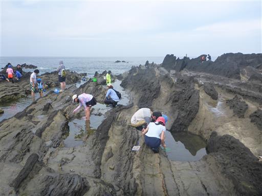 タイドプールで生物を探す。