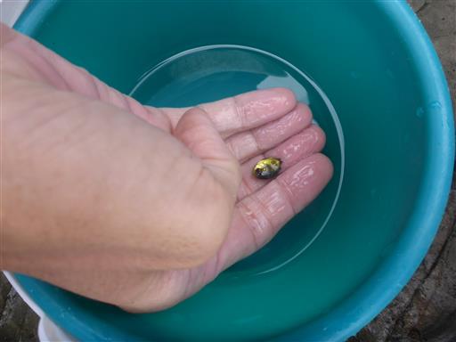小さい金色の魚。泳いでいる姿は目立たないが、横から見るときれいだ。