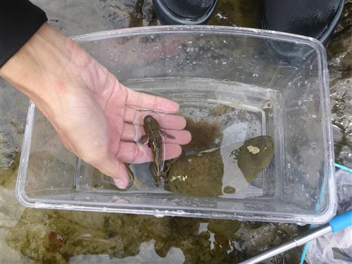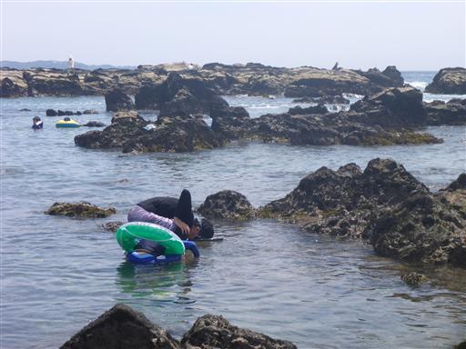 岩陰で生物を探す。