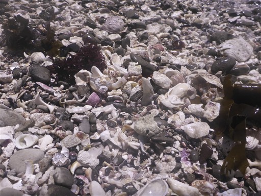 なぜかこの場所だけ大量に貝殻が堆積している。