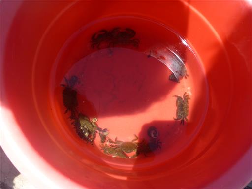 娘とカニを捕まえて遊ぶ。今日も大漁だ。