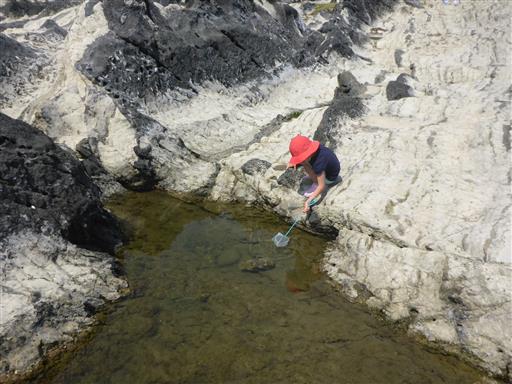 なかなかハゼやカニが捕まらないので、タイドプールに狙いを定める。