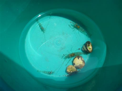 今回はエビを捕まえることに成功。なかなか見つからない生物だけに嬉しい成果だ。