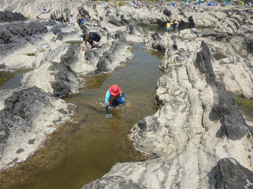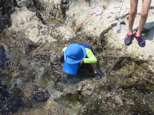 娘は何やらタイドプールを見つめている。