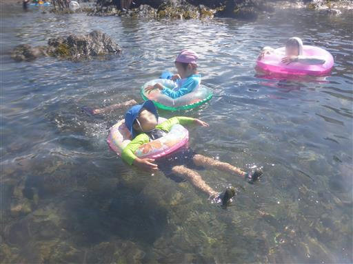 浮輪で浮かんだ後は生物を捕まえて遊ぶ。