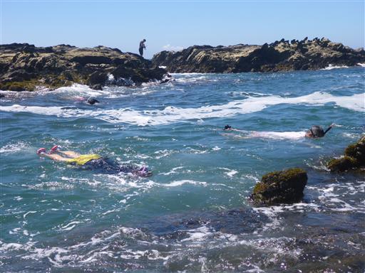 海が荒れているため結構な水流があり、体が岩にぶつかって痛い。