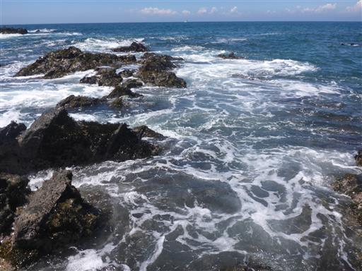 波が去った後。この様子では、この辺りではとてもシュノーケリングなどできない。