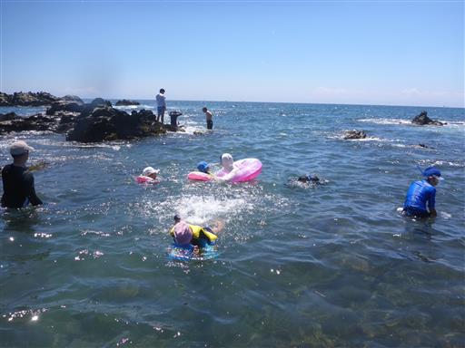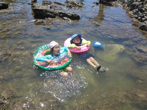 昼食をとったら子供たちと少し深いところ(1m程度)に行ってみる。
