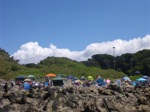 岩に囲まれた部分はあまり波が来ず、比較的安全だ。