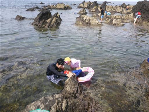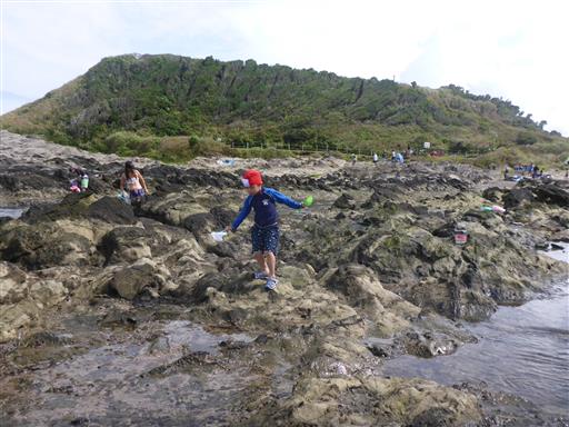 タイドプールでひたすら獲物を探す息子。