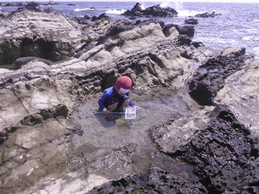 早速、生物を探す。干潮で水は少なめだ。