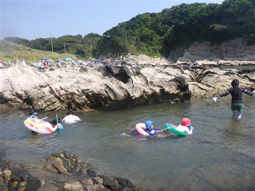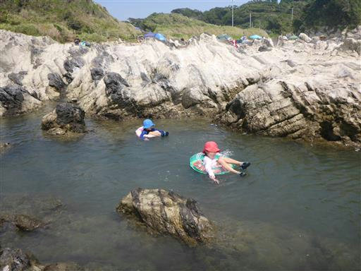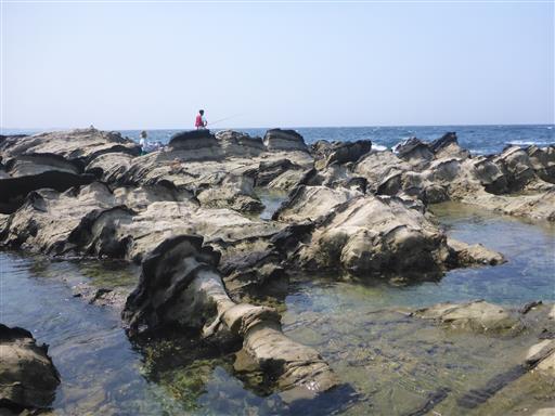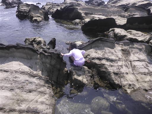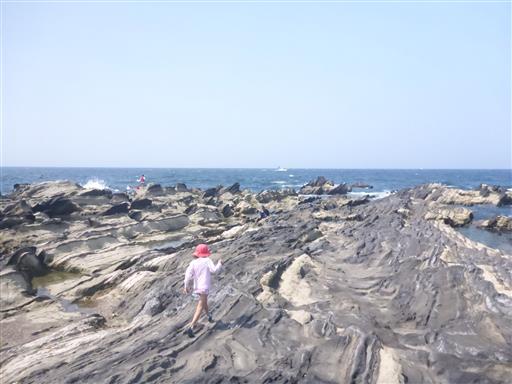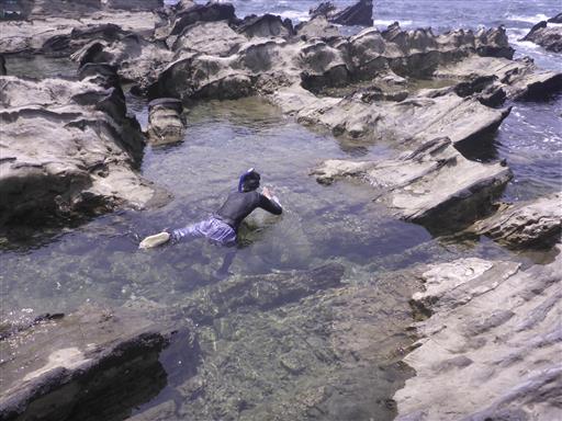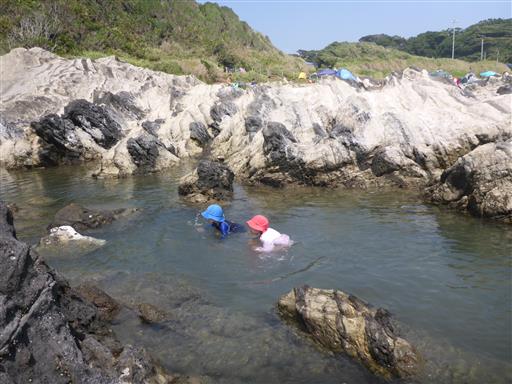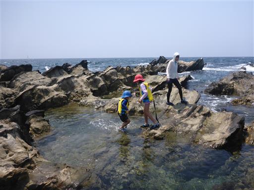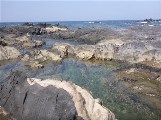 今まで遊んでいたのは目の前の海とその向こう側の岩地帯。今回はその対岸だ。