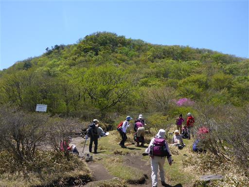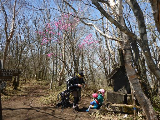 山頂に近づくとちらほらとアカヤシオの花を見かけるようになる。