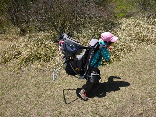 娘がザックを担いで遊んでいる。息子を乗せて担いでくれると楽なのだが…