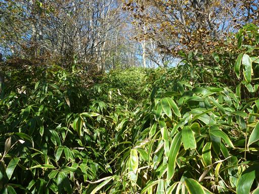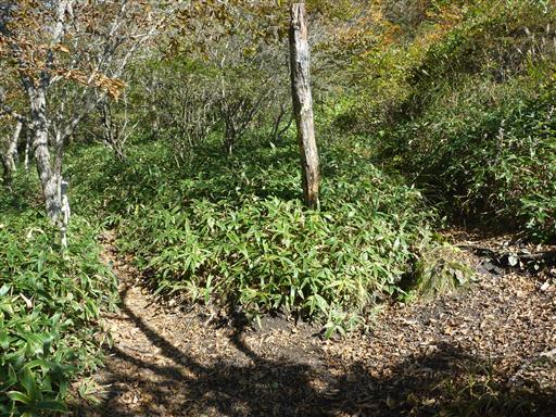 両側の笹の背が高く圧迫感がある。