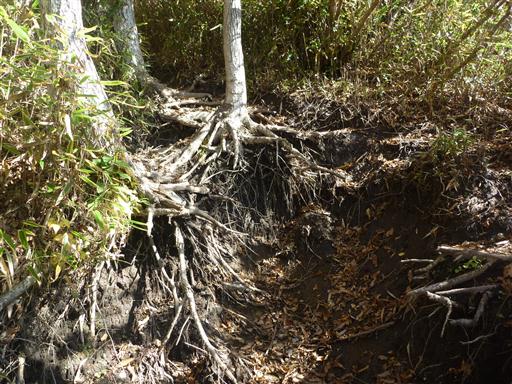 地面が脆いからか、道が崩壊している場所があちらこちらにある。
