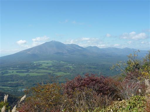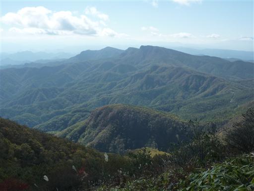 目の前に広がるのは角落山塊の山々。一番高く見えるのは鼻曲山だ。