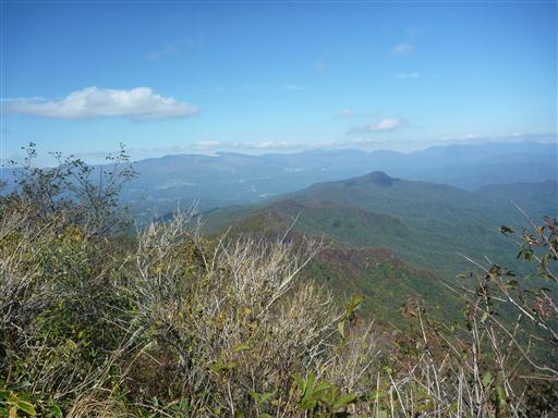 山頂近くになると笹が低くなり一気に展望が開ける。