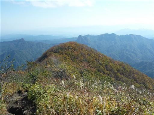 目の前に見える鋭いピークはかつて登った角落山だ。