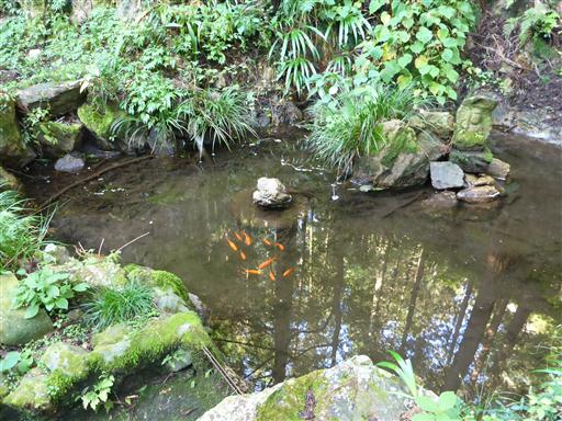 小さな池に金魚が住んでいる。冬でも大丈夫なのだろうか?