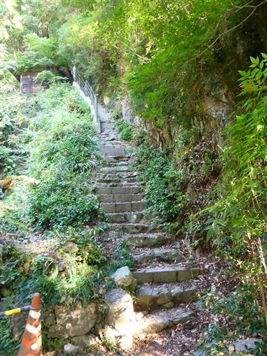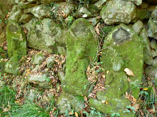 石仏に見守られながら、古びた階段を登っていく。