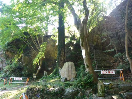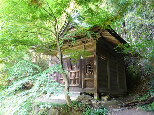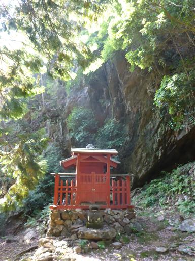 奥に小さな祠が祀られている。その背後は絶壁だ。