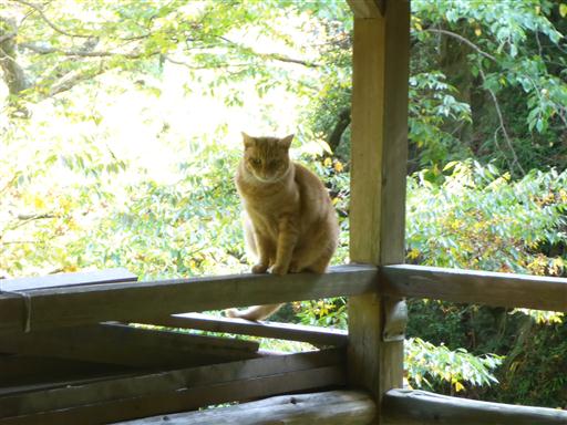 境内に太った猫がうろついている。