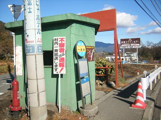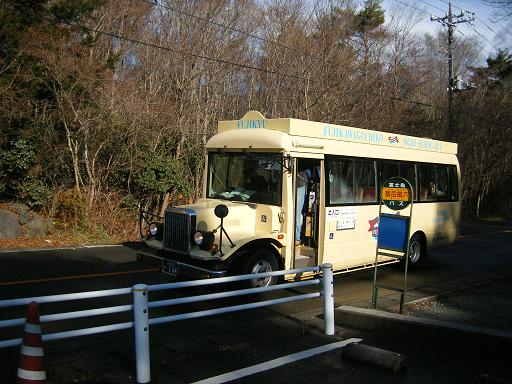 9:53 レトロなバスに乗り、富岳風穴バス停到着。