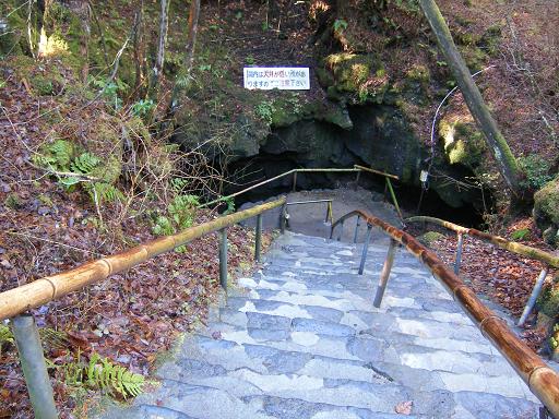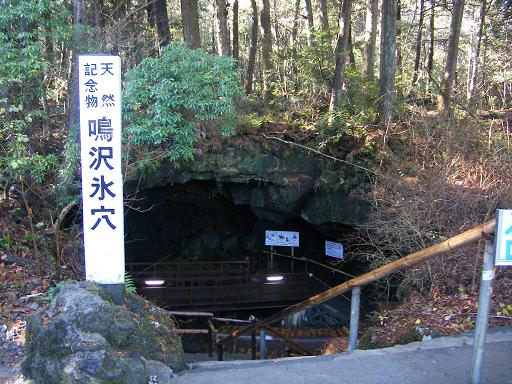 鳴沢氷穴入口。こっちは縦に長い洞穴。