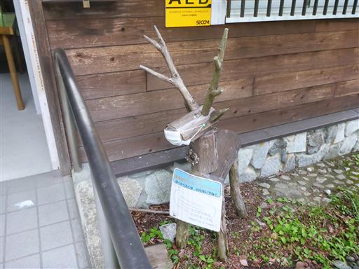 西丹沢ビジターセンター前にいる鹿はマスクをしている。