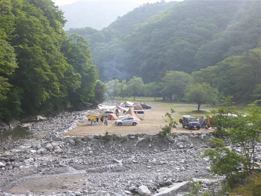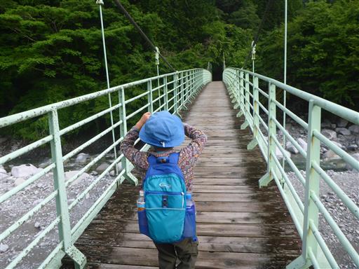 息子は川で遊びたそうにしている。帰りに川に寄ることを約束して山に向かう。