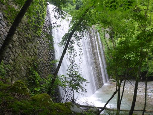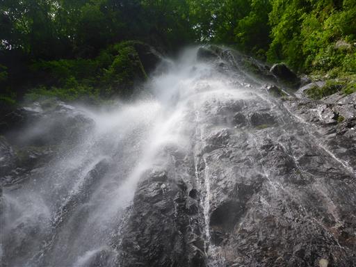 この滝は滝壺がほとんどなく、真下に行くことができる。