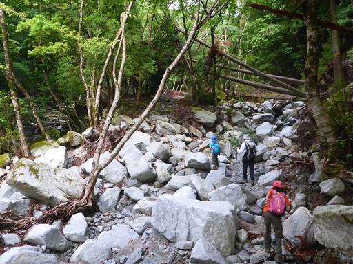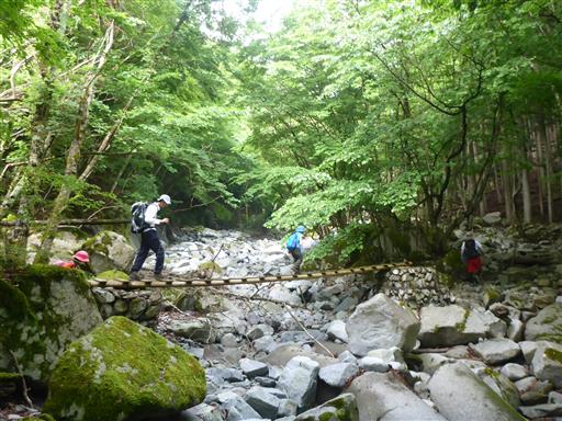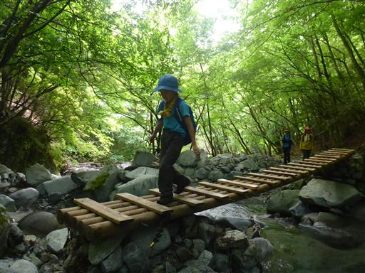 一箇所沢を渡渉する場所があり、息子の手を繋いでサポートしたのだが